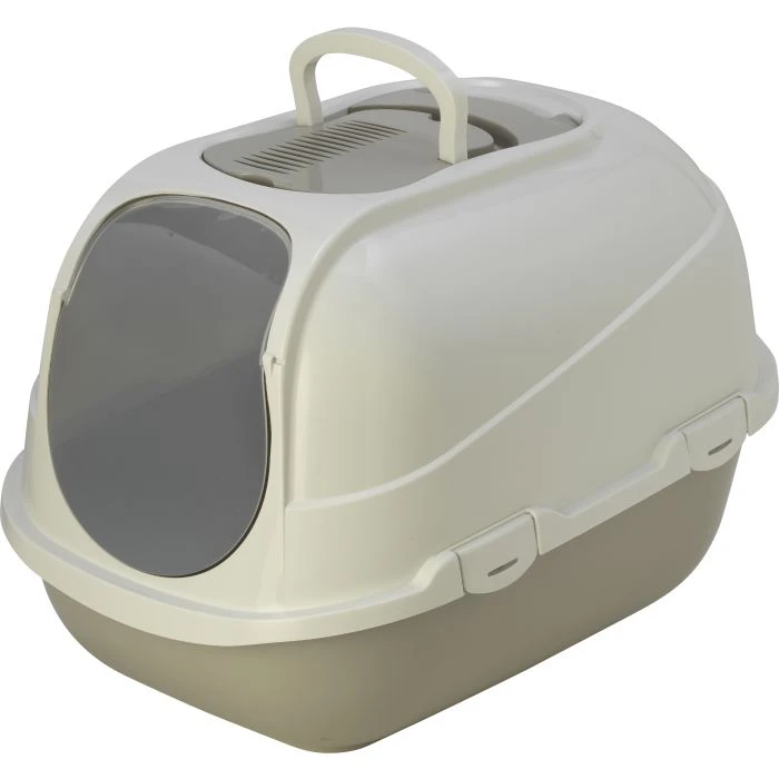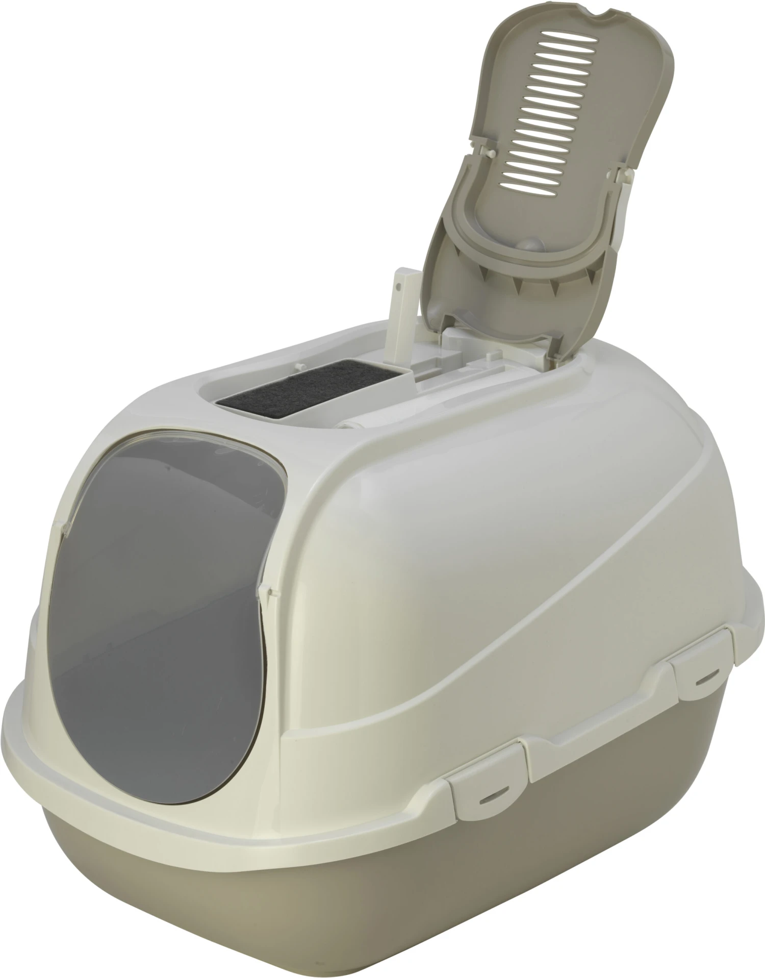Le bac à litière Hera XL convient également aux chats de grande taille. Il est munie d’une poignée qui vous permet de le déplacer facilement. Sur le dessus se trouve un filtre à charbon remplaçable qui combat les mauvaises odeurs. Le couvercle s’enlève facilement grâce à un système de clics, ce qui vous permet de nettoyer le bac à litière. Il est livré avec une pelle à chat.
