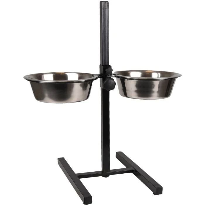 Support d’alimentation ergonomique car réglable en hauteur avec 2 gamelles en acier inoxydable, diamètre 21cm (1500ml).