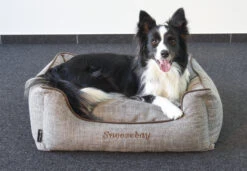 Le panier pour chien Snoozebay est tendance. Le coussin est amovible et la housse peut être retirée par une fermeture éclair. Il peut être lavé à 30 degrés. Au fond, il y a une couche antidérapante pour que le panier reste bien en place. Le faible niveau d’entrée fait que le panier convient également aux chiens un peu plus âgés. Grâce à sa belle couleur neutre et à son aspect, le panier peut être placé dans n’importe quel intérieur.