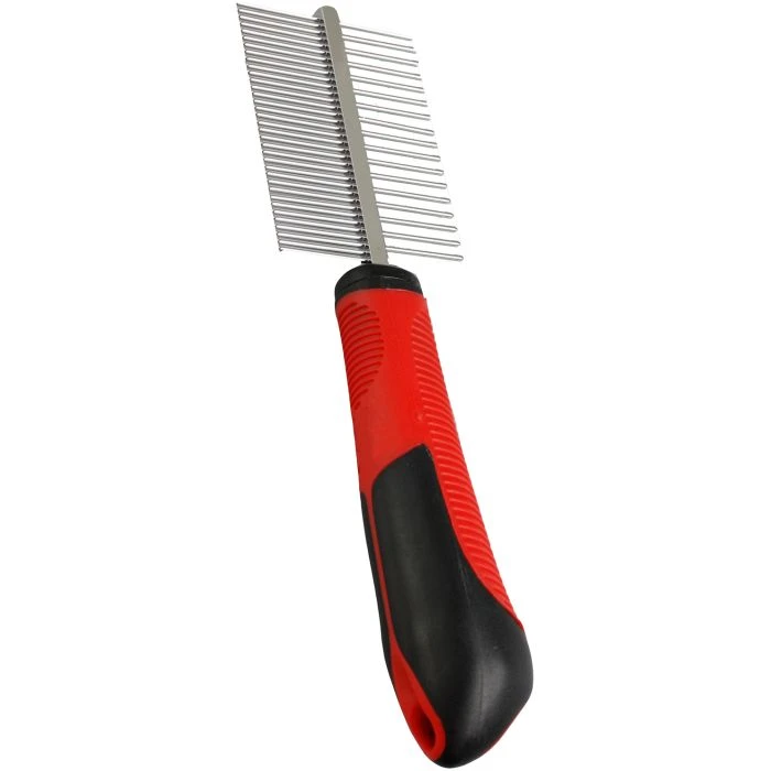 Le pelage de certains chiens est particulièrement sujet aux nœuds. Un peigne nettoie, lisse et démêle le pelage et favorise la circulation de la peau. Si votre chien a des poils emmêlés, ne les arrachez pas d’un seul coup car vous enlèveriez aussi des poils sains. Travaillez plutôt du bas du nœud vers le haut et, si nécessaire, utilisez vos doigts pour vous aider. Ce peigne convient aux chiens à poils longs et courts. Nettoyez régulièrement le peigne avec de l’eau et une solution antiseptique telle que Dettol ou Barbicide pour éviter la prolifération des bactéries. Ensuite, laissez bien sécher.