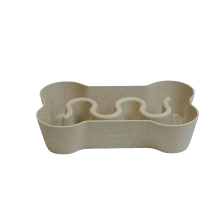 Gamelle anti-glouton en forme d’os favorisant une alimentation plus lente et plus naturelle, jusqu’à 10 fois plus longue.