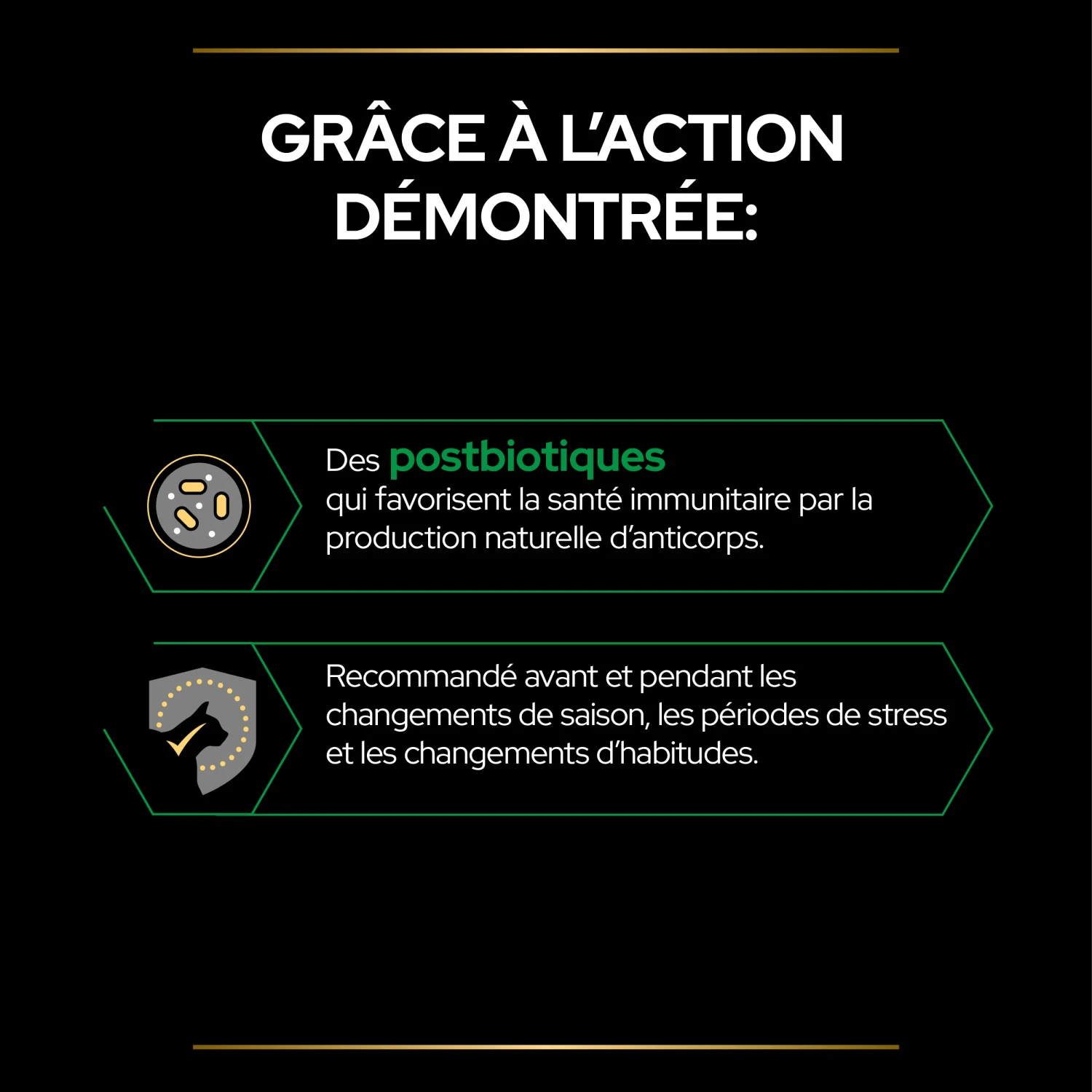 PRO PLAN® a mis au point une gamme d’aliments complĂ©mentaires ciblĂ©s destinĂ©s Ă agir sur la mobilitĂ©, l’immunitĂ©, la vitalitĂ©, la digestion, la peau & le pelage et le bien-ĂŞtre. PRO PLAN® Natural Defences+ protège votre chat de l’intĂ©rieur, grâce Ă l’action des postbiotiques. Sa formule est scientifiquement conçue pour : – Soutenir le système immunitaire – Aider la production naturelle d’anticorps