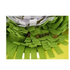 Le tapis à renifler peut être transformé, au moyen d’un cordon, en gamelle à renifler.