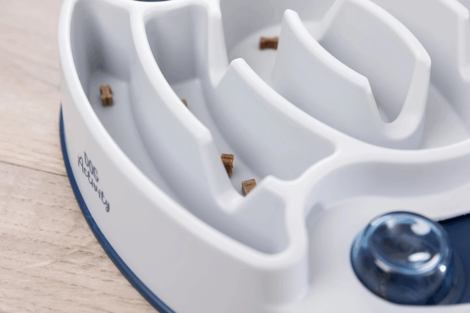 Le jeu consiste en un labyrinthe avec des renfoncements sur les côtés où vous pouvez cacher les croquettes ou les friandises sous un couvercle. Au final, votre chien est stimulé, il mange plus lentement et moins, ce qui contribue à une digestion saine et à un poids idéal.