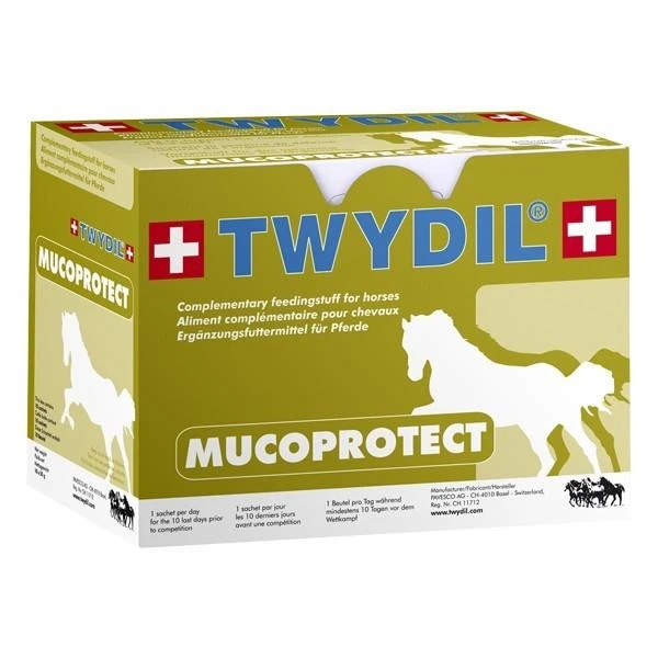 TWYDIL® MUCOPROTECT est un complément alimentaire pour le cheval, riche en extraits de plantes, vitamine C et pré-biotiques, destiné à soutenir le système de défense naturelle de l’organisme chez le cheval.