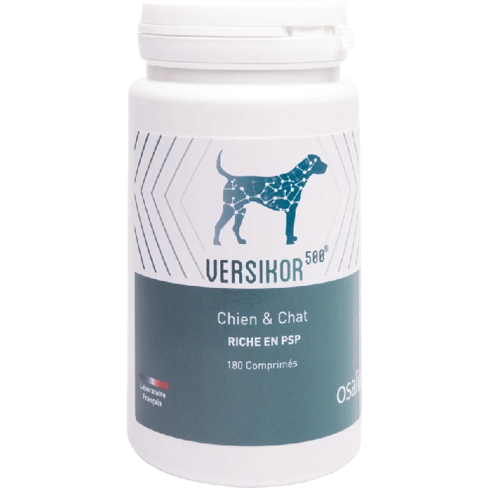 VERSIKOR500® est un aliment complémentaire destiné aux chiens et chats riche en PSP (38% polysaccharides, 11.5% peptides), un polysaccharopeptide extrait du mycelium de la souche Cov-1 de Coriolus versicolor. Il permet une stimulation de l’immunité par phytothérapie.
