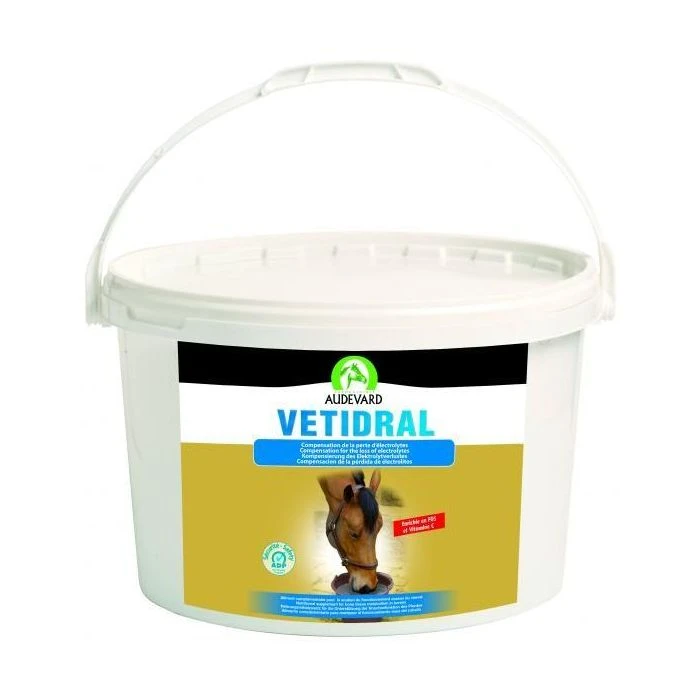 – Compensation de la perte d’électrolytes : VETIDRAL rapporte les électrolytes perdus dans une proportion identique à celle de la sueur. De plus, les FOS ont démontré qu’ils permettent une meilleure assimilation des minéraux. Les électrolytes sont donc mieux et plus rapidement assimilés par le cheval.